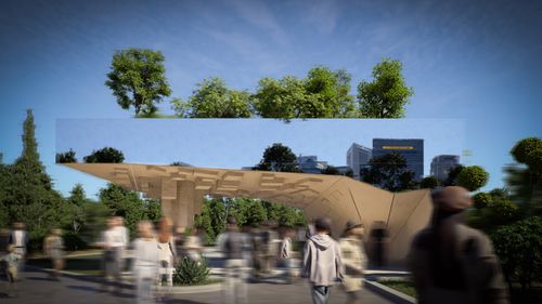 The pavilion is an invitation to pause before what is lost and what we have built.